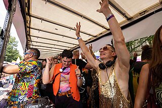 Beim CSD 2025 waren in der Hauptstadt Paritäter*innen aus über 30 Organisationen mit uns auf der Straße. Gemeinsam mit dem Paritätischen Landesverband Berlin zogen wir zu Fuß und auf einem Truck durch die Innenstadt, um bunt und laut auf die Rechte queerer Menschen aufmerksam zu machen. Dies geschah auch mit vielfältigen Wortbeiträgen, u.a. von Serkan Wels vom Arbeitskreis queer*human vom Humanistischen Verband Berlin-Brandenburg, Uwe Brohl-Zubert vom Paritätischen Landesverband Berlin, von Michelle Kortz, Mitglied des Bundesvorstands LSVD+ und Dr. Joachim Rock, Hauptgeschäftsführer des Paritätischen Gesamtverbands.